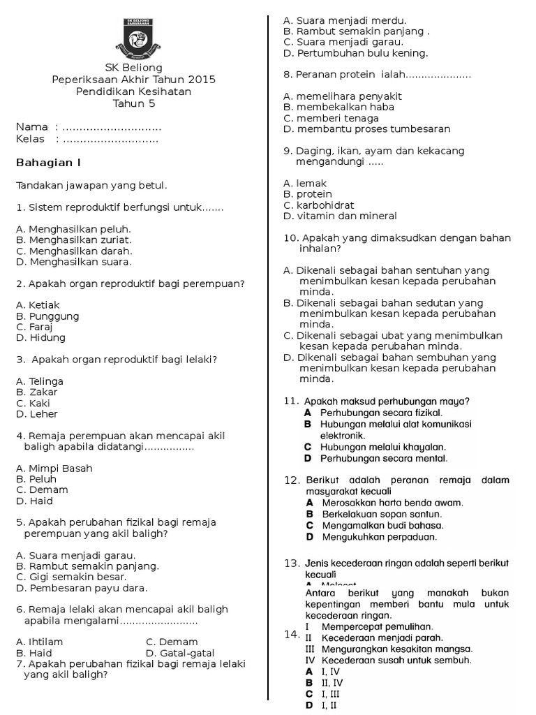 Bahan pdpr pendidikan kesihatan dibawah sub topik kesihatan diri dan reproduktif manusia untuk murid tahun 5. Soalan pendidikan kesihatan tahun 3. Soalan pjpk (pendidikan jasmani & pendidikan kesihatan. Semua kanak kanak akan mengalami akil baligh yang menunjukkan telah berlakunya kematangan sistem reproduktif mereka pada ketika ini. Oleh itu, kurikulum pendidikan kesihatan di semua sekolah rendah di seluruh negara telah diperkenalkan sejak 15 tahun yang lalu.