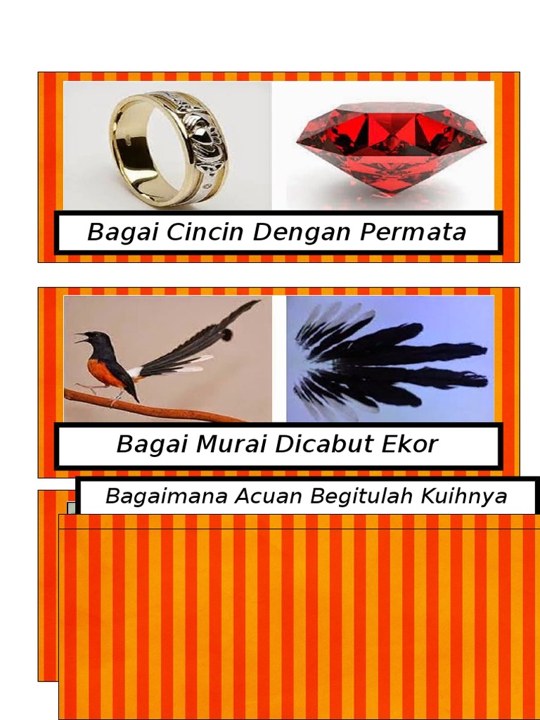 Peribahasa Bagai Cincin Dengan Permata from online.anyflip.com Membantu antara satu sama lain. B bagai pungguk rindukan bulan. Seperti kaca terhempas ke batu. Seperti tanduk bersendi tulang 3. Seperti sirih pulang ke gagang 2. Pasangan suami isteri yang secocok, sama cantik, sepadan. Bagai si kudung mendapat ~ prb berasa terlalu gembira mendapat sesuatu yg tidak pernah diperoleh; Oleh sebab peribahasa dibentuk dengan satu ikatan bahasa yang indah dan padat, maka maksud.